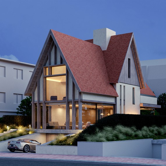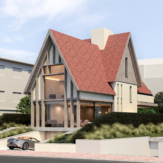 Deze woning in Duinberge, aan de kust, verenigt moderne architectuur met natuurlijke materialen. Het ontwerp creëert een rustige en stijlvolle sfeer die harmonieert met de omliggende natuur.